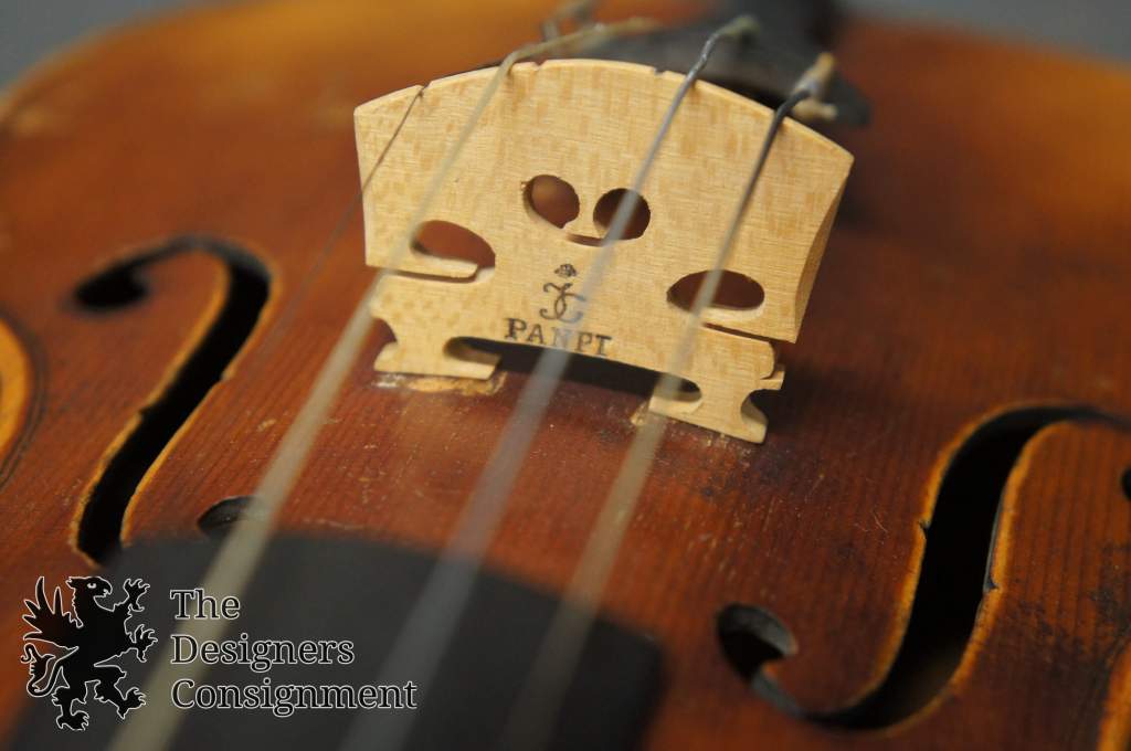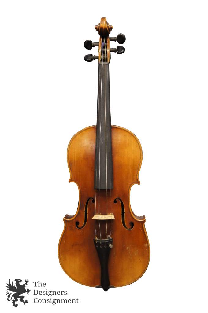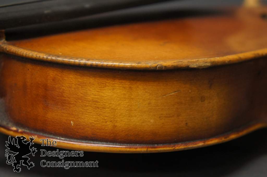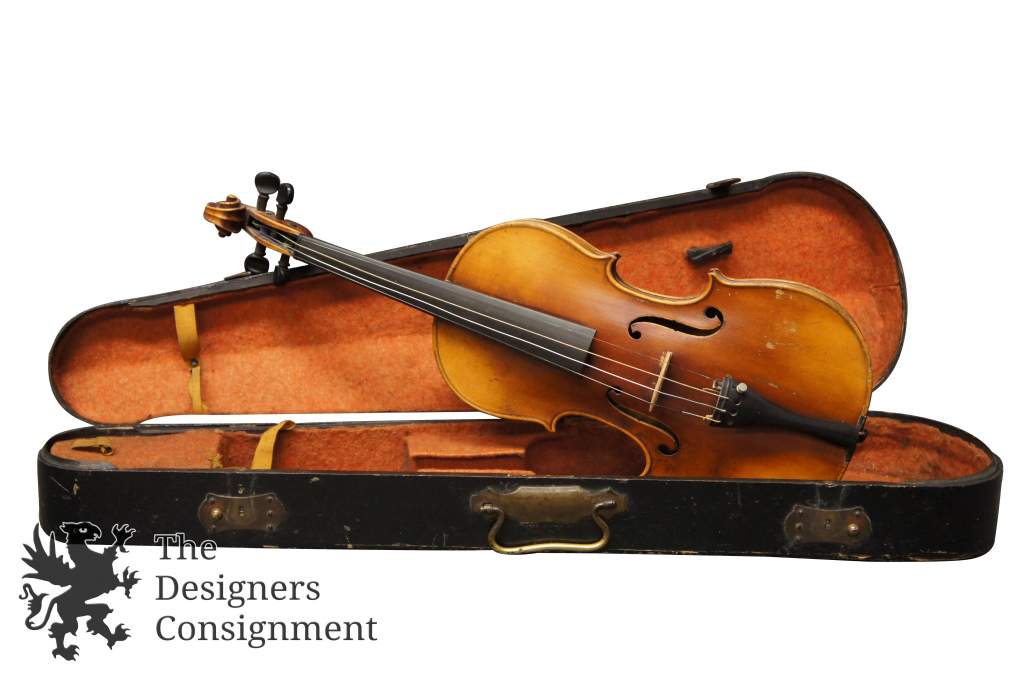 Abeautifulreproduction Stradivarius violin in antique wood case. The back and neck appears to be Maple orSnake-wood.