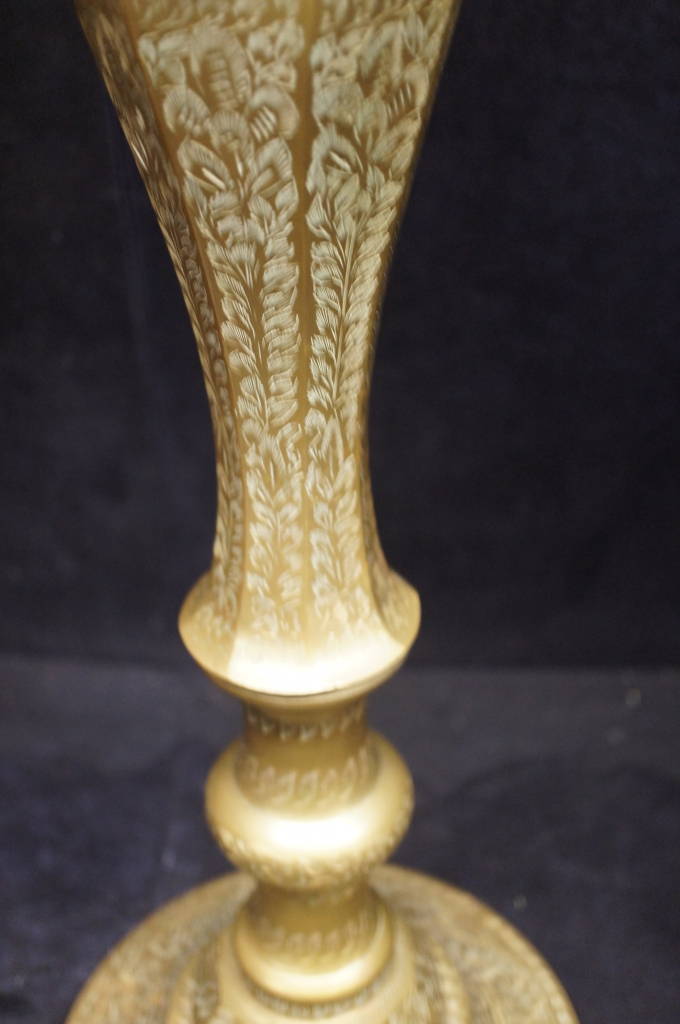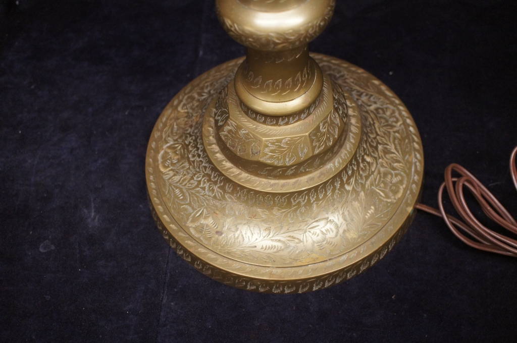 Floral Etched Brass Table Lamp India Islamic? Vintage Table Accent 40" Mid Cent.