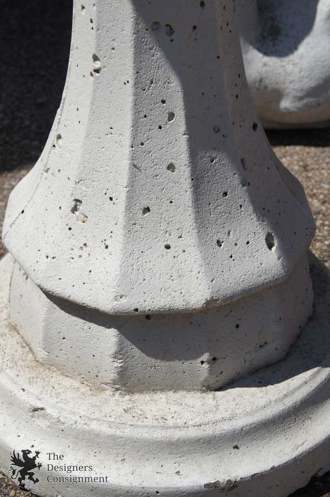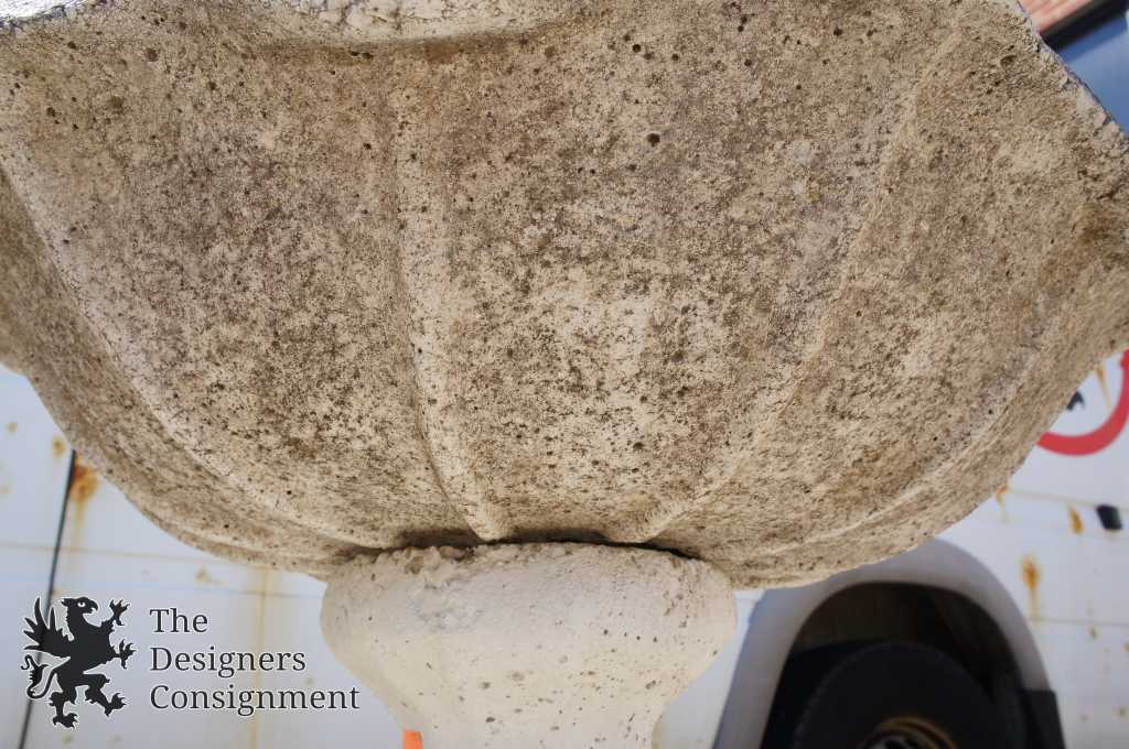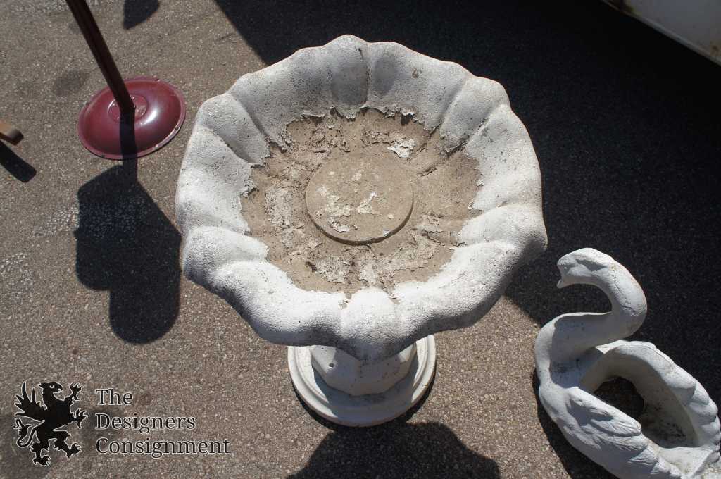 2 Piece concrete bird back. Features a tapered base and flowered bowl. Very Heavy!