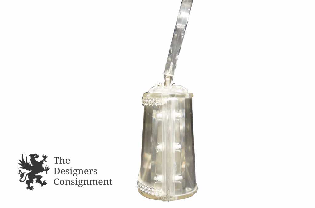 Clearrhinestonepurse with a three-ball clasp to shut it