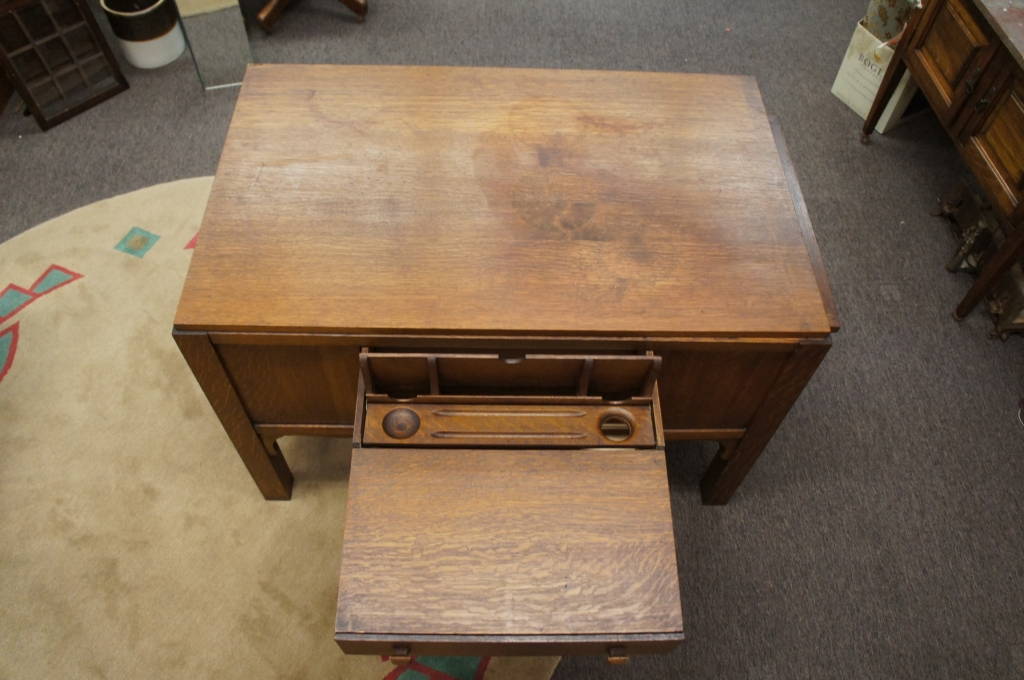 Antique Arts Crafts Mission Writing Desk Tiger Oak W/ Hidden Bookshelf Library