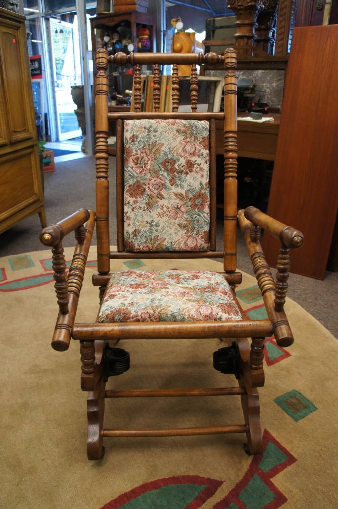 Arts + Crafts Eastlake Inspired Platform Rocker Walnut Antique Rocking Chair