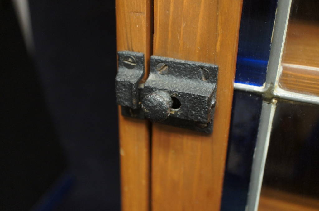 Primitive Antique Pine Hanging Curio Cabinet Beveled Stain Glass Cupboard Display