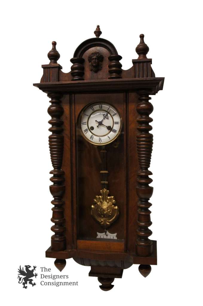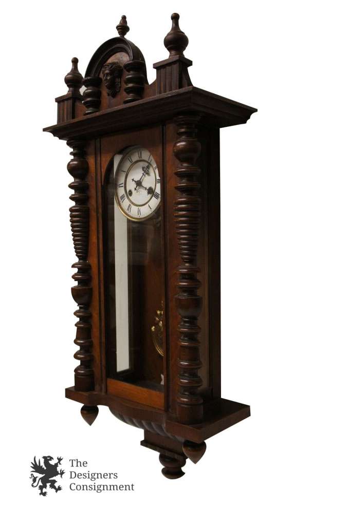 A stunning antique wall clock by Junghans. Features a spindled case with beautifully carved accents. Will look great in any setting!