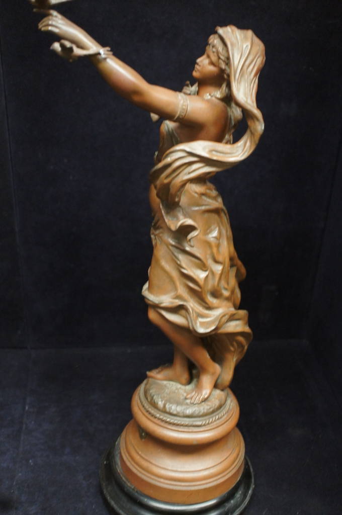 L. Raphael Antique Victorian Spelter Bronze Statue Return of the Swallows Figure