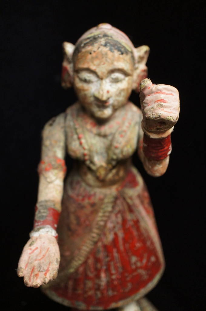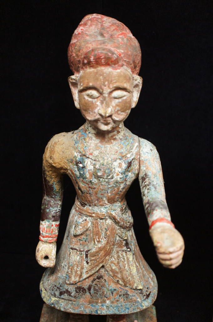23" Ancient Pre Columbian Antique Carved Wood Guardian Figures Polychrome Tomb?