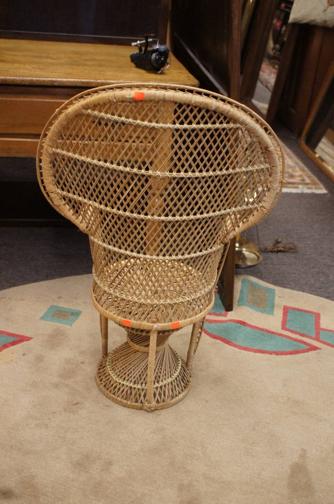 Vintage Childrens High Fan Back Peacock Wicker Chair Rattan Folk Art 35" Kids