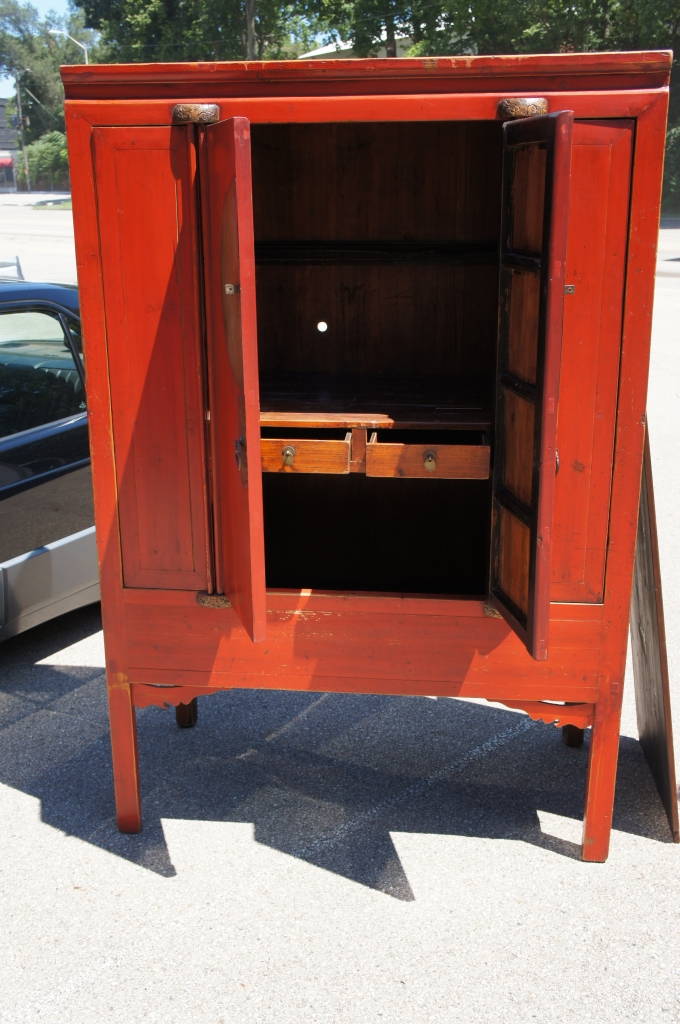 Large Antique Zhejiang Chinese Wedding Cabinet Armoire Red Lacquered Wardrobe