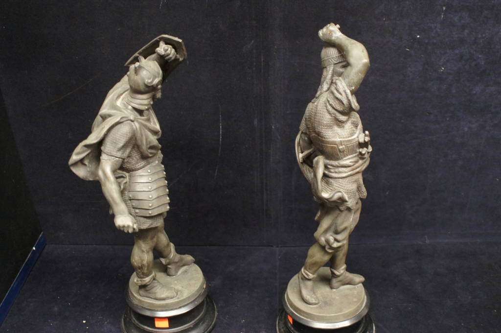Stunning Medieval Bronze Knight Figurines Life Like Guard Statues Heavy 19