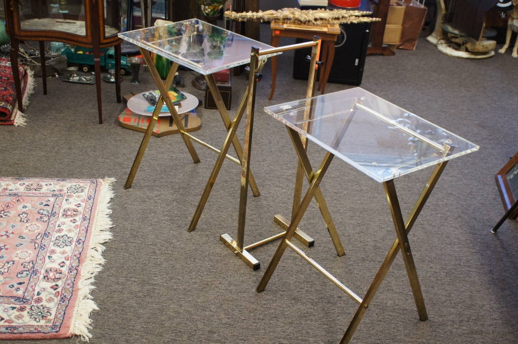 Mid Century Modern Brass & Lucite Top Serving Tv Tray Tables Hollis? Jones?