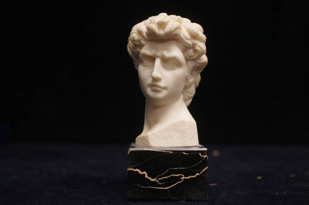 Italian Made Ruggerui Greek Roman Bust Head W/ Marble Base Resin Figurine