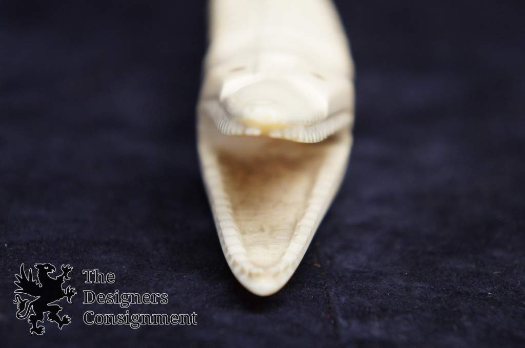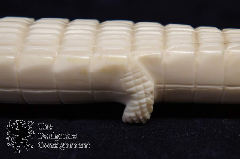 17" Intricately Carved Bovine Alligator Figure Ivory Color