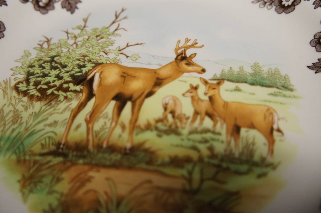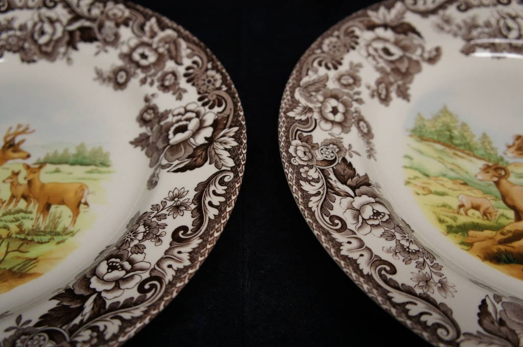 2 Spode England Woodland Wildlife Ram Deer Collectible Animal Dinner Plates