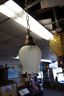 2 Vtg Spanish Brass Hanging Light Tulip Shaped Frosted Glass Shade Chandeleir