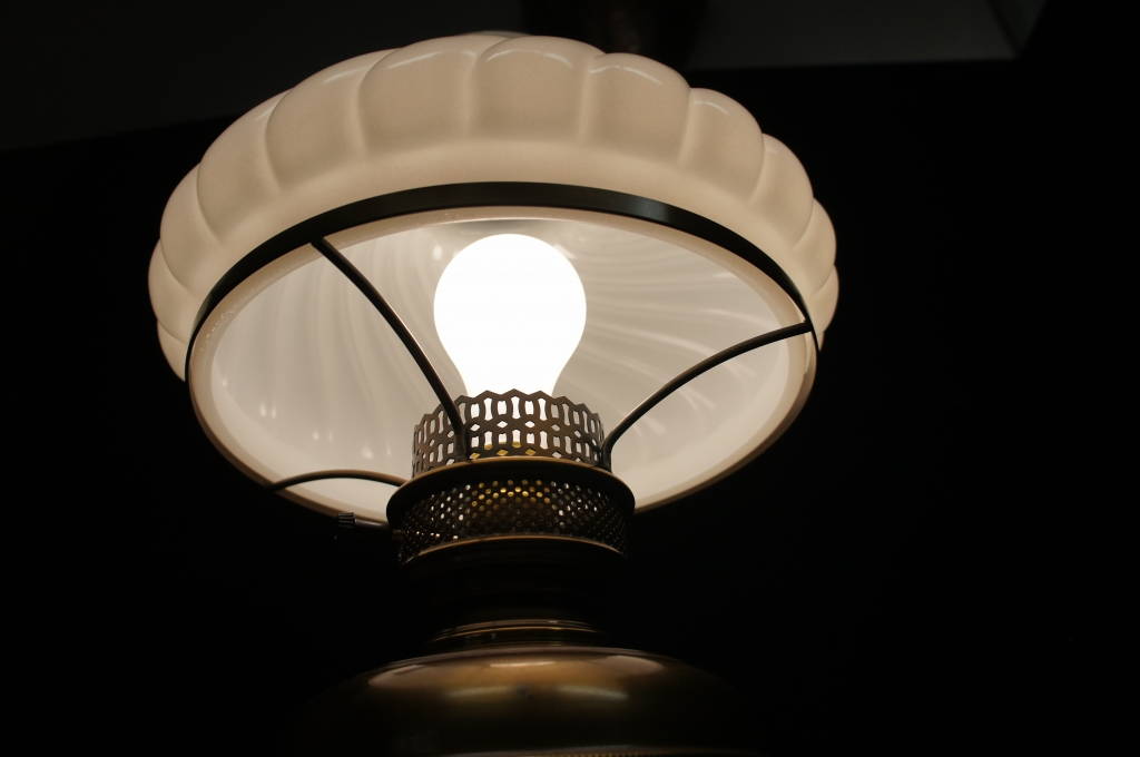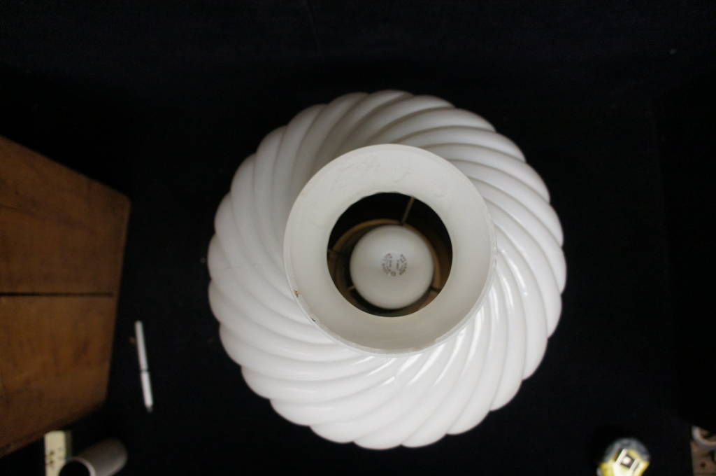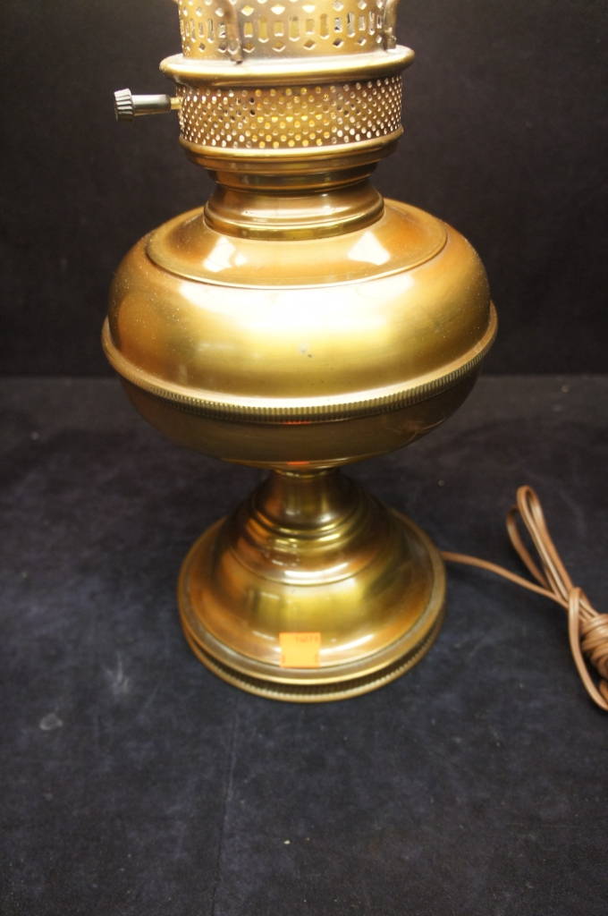 Vintage Brass Hurricane Style Lamp Swirled Milk Glass Shade Repro Pierced Accent