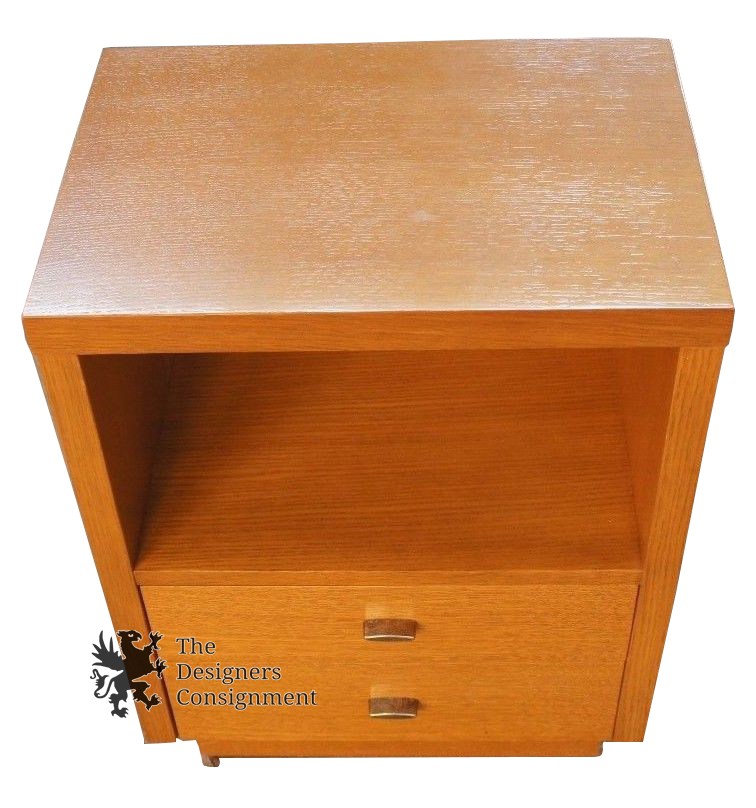 A beautiful mid century nightstand. Made from oak with brass drawer pulls. We also have a matching dressers and mirror if interested.