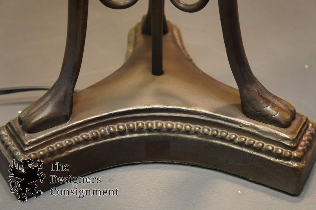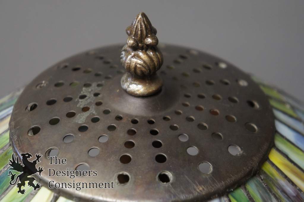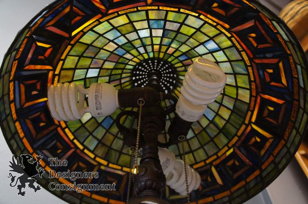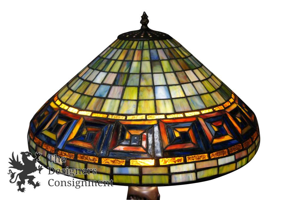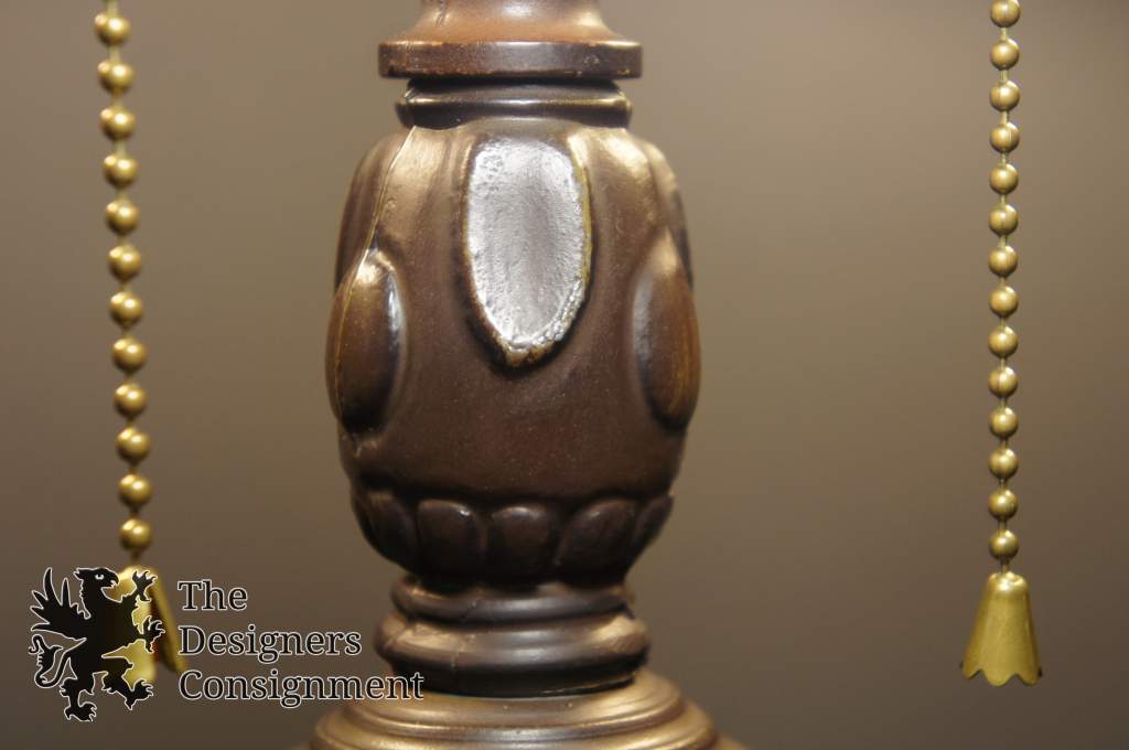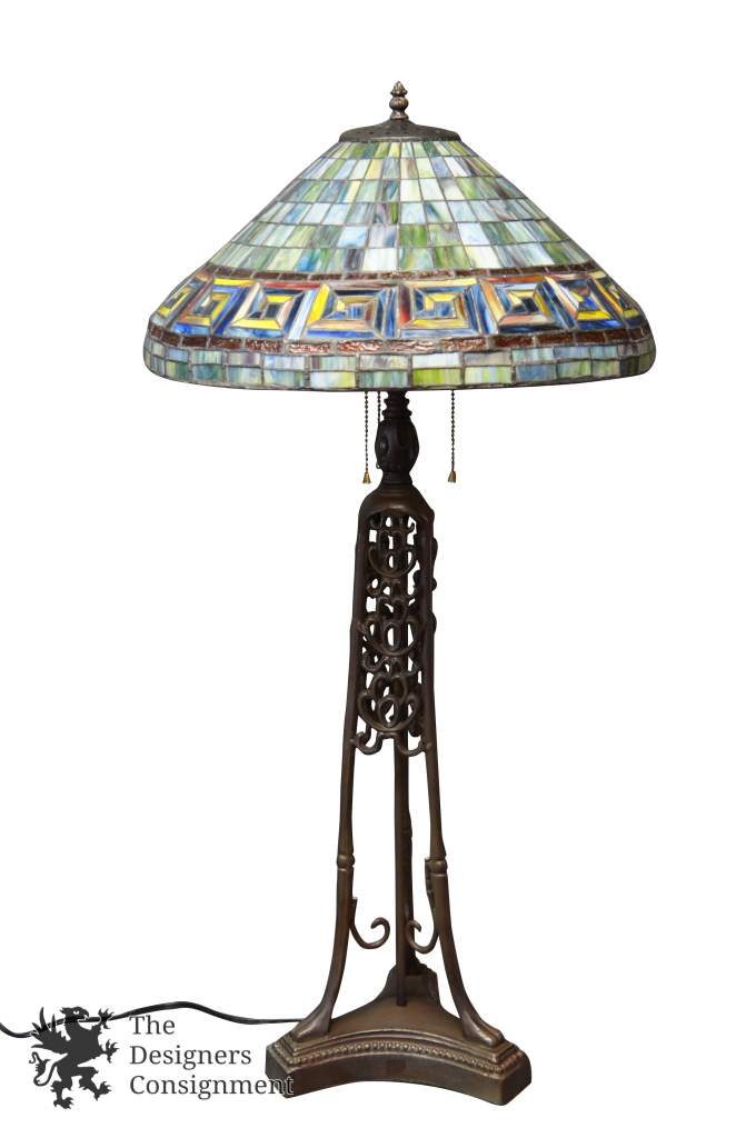 Vintage Tiffany Art Deco Style 3 Light Stained Slag Glass Table Accent Lamp 39