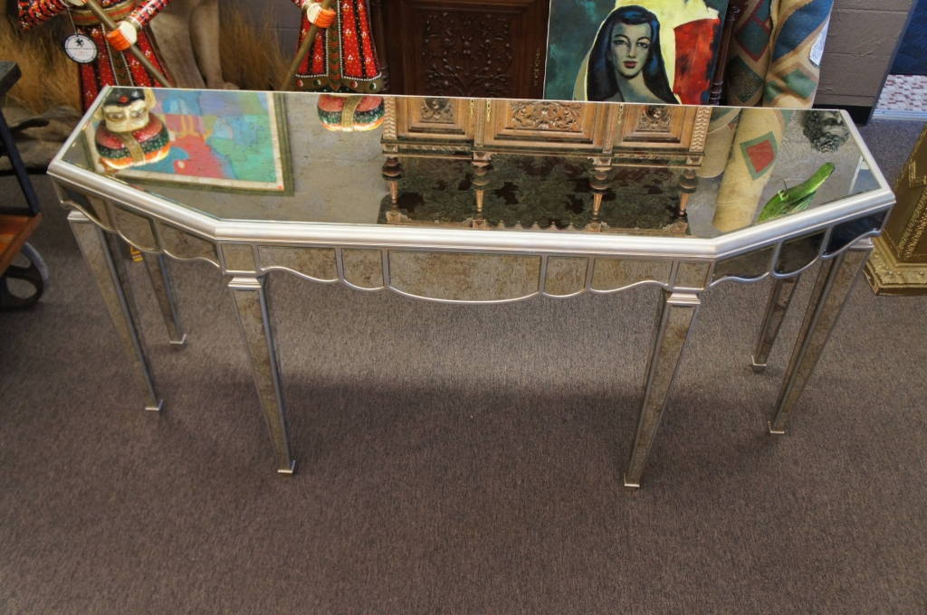 79" Mirrored Designer Console Table Beveled Distressed Contemporary Wall Accent
