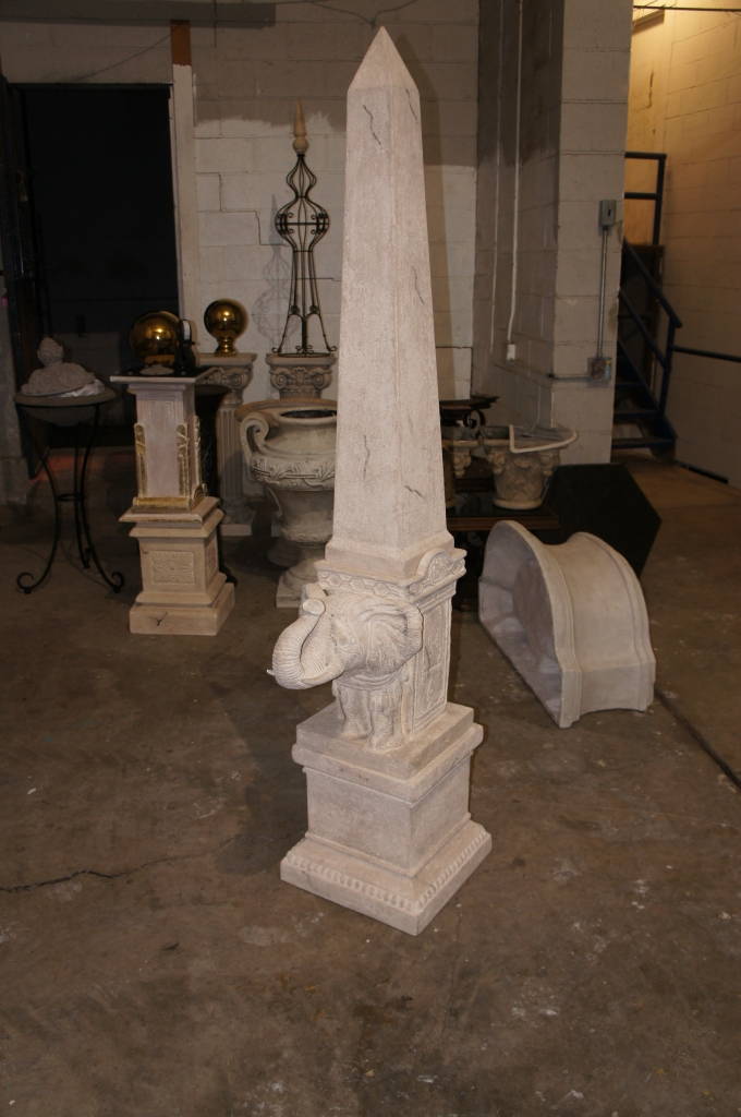 Unique Resin Cast Elephant Statue W Obelisk Pointed Pillar 73" Home Decor Figure
