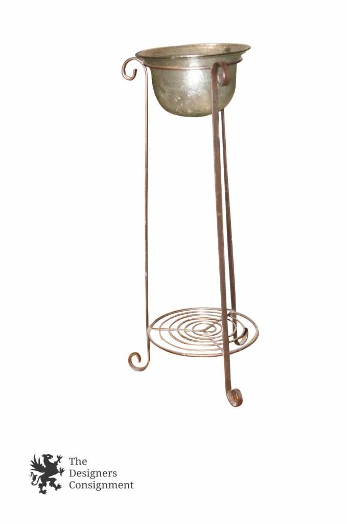 Stunning Iron Plant Stand W/ Flared Glass Holder Tripod Base 29" Flower Ships