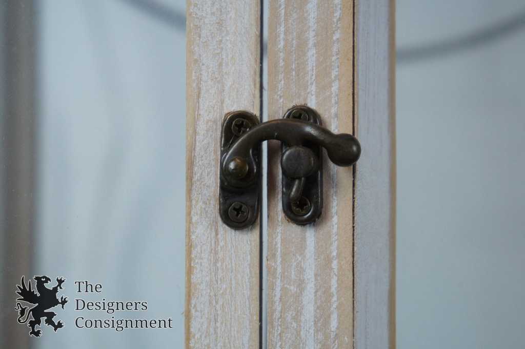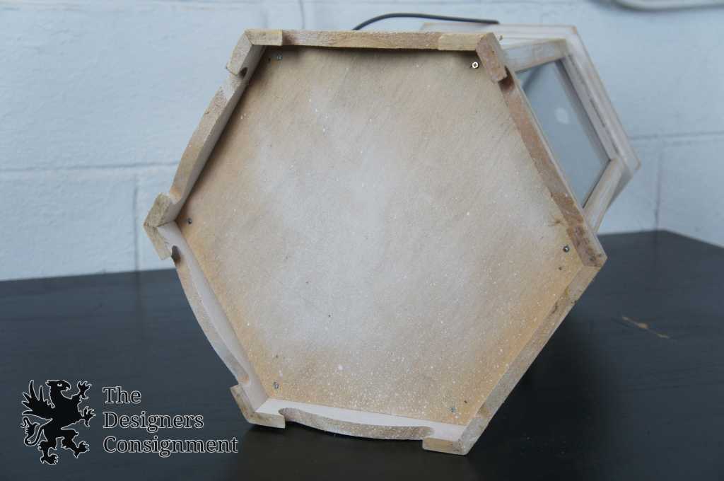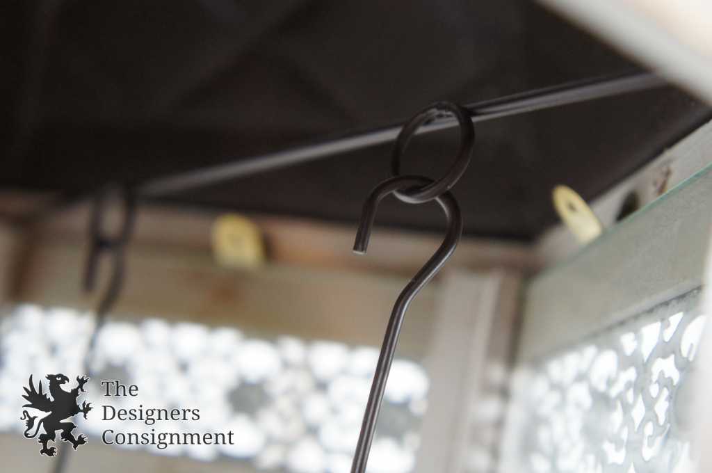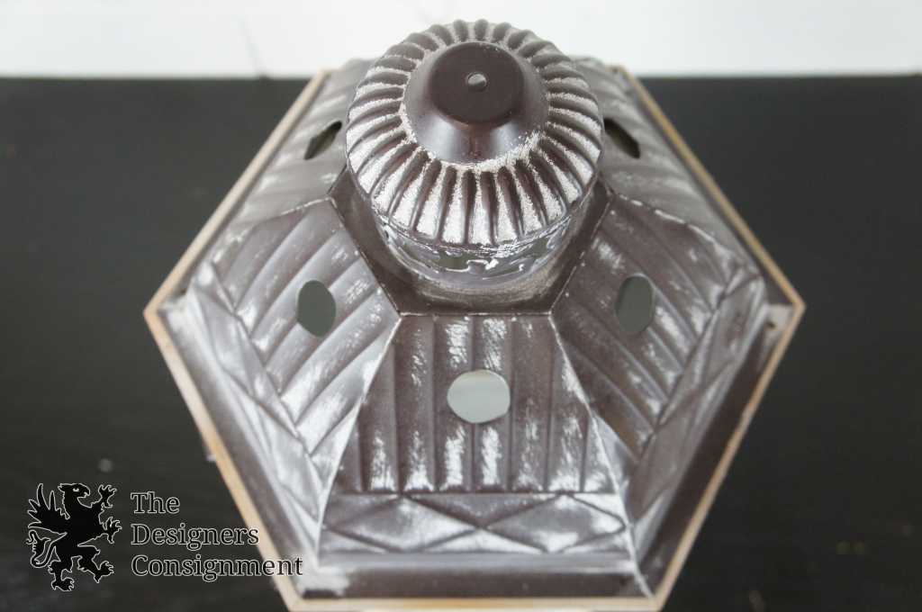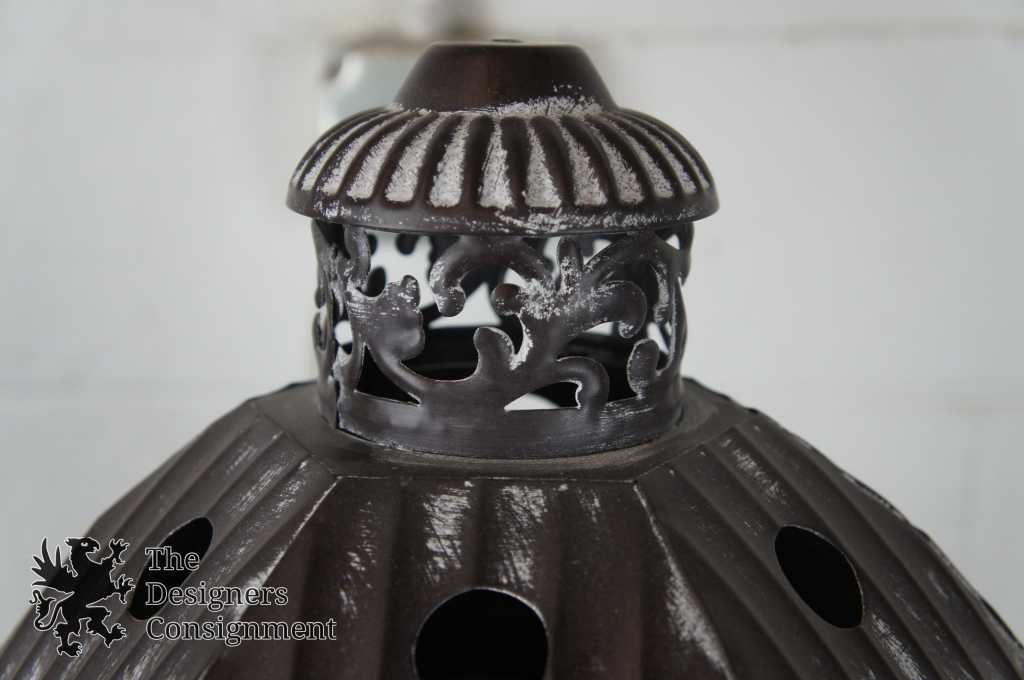 Monumental Moroccan Votive Lantern. Made from whitewashed wood with a pierced metal dome and lattice inserts. Interior features 4 staggered hanging positions for tea lights. A neat compliment to any setting.