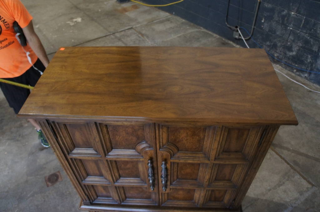 Vintage Drexel Distressed Mahogany & Burlwood Highboy Chest of Drawers Armoire
