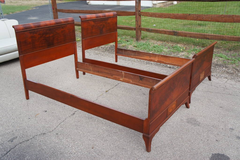 2 Antique Flamed Mahogany Empire Style Twin Sleigh Beds W/ Marquetry Accents