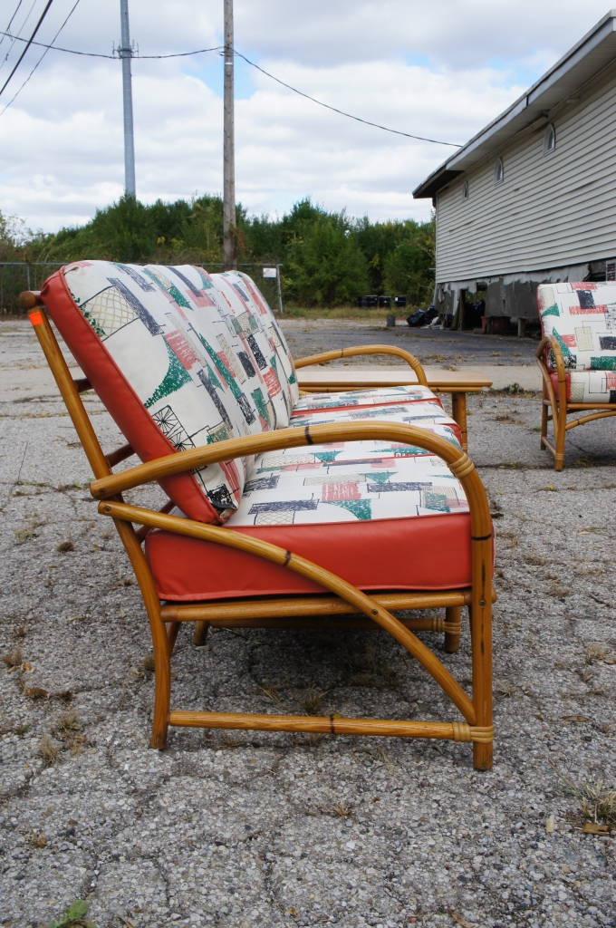 Heywood Wakefield Mid Century Modern Patio Furniture Set Bamboo Sofa Chair Table