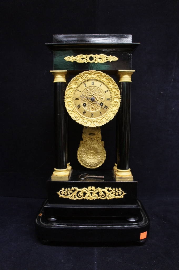 Antique Neoclassical French Portico Clock Gilt Bronze & Glass Dome 19th C Mantel