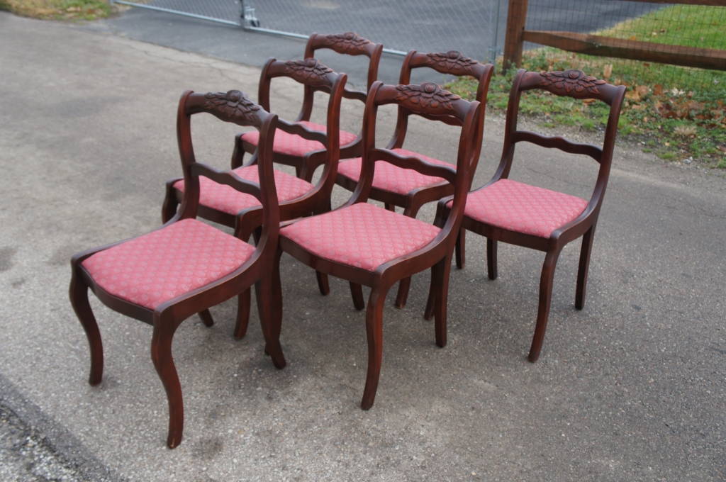 6 Antique Roseback Carved Mahogany Duncan Phyfe Style Dining Room Chairs