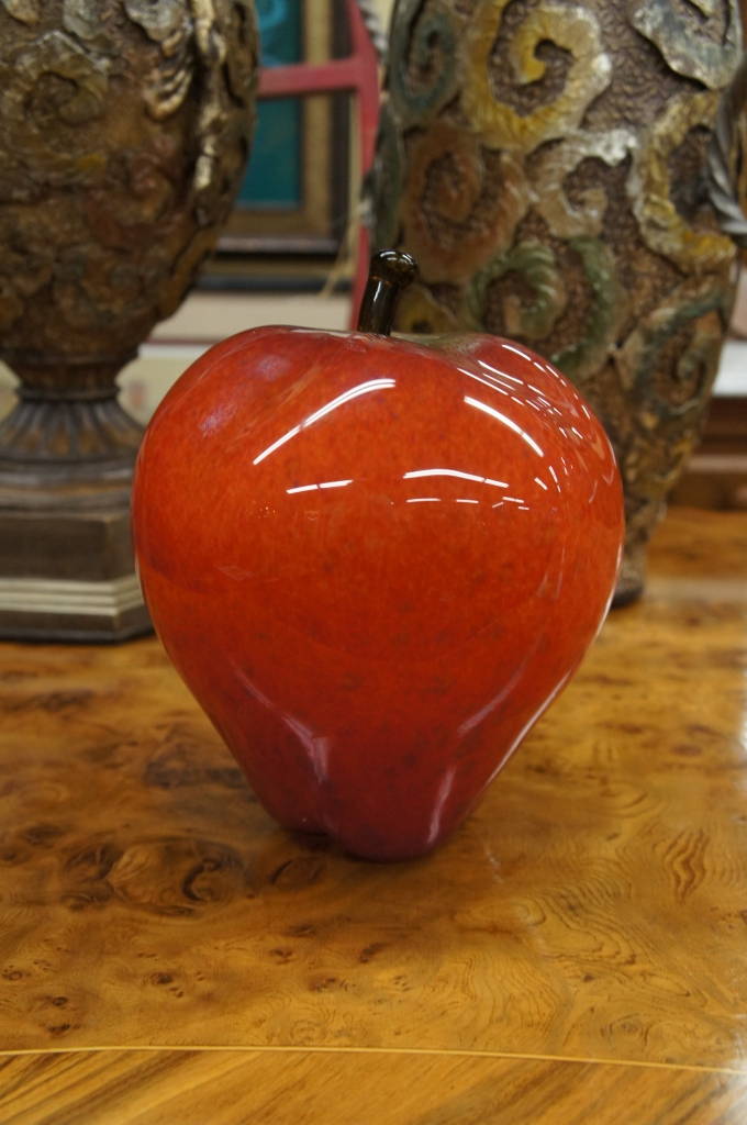 Beautiful Hand Blown Art Glass Apple Paperweight Artist Signed Desk Office Vtg