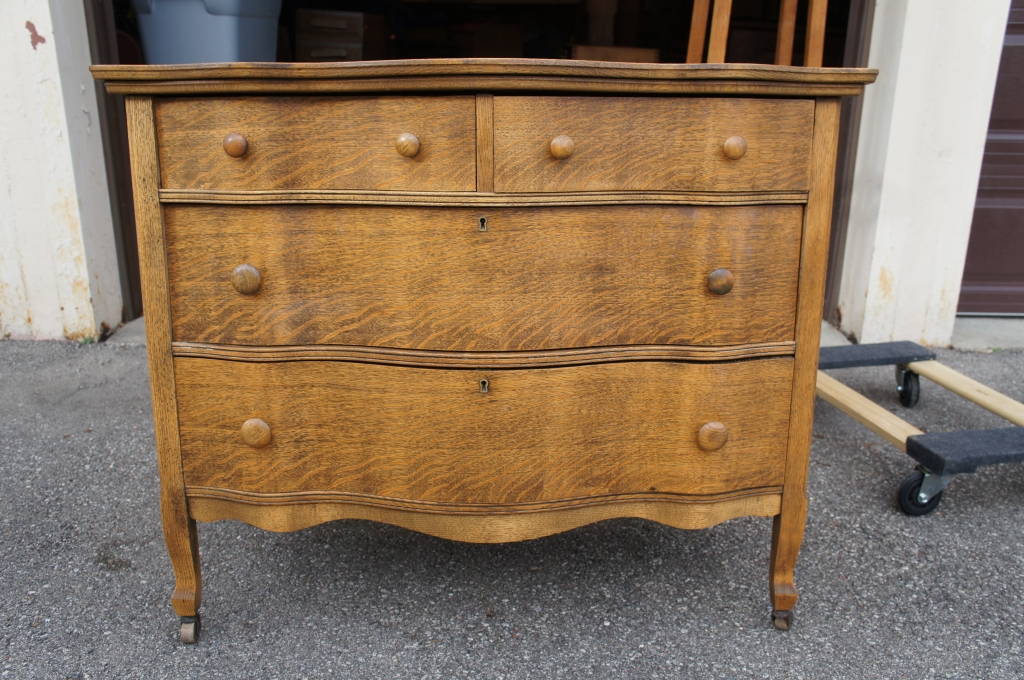 Antique Quartersawn Oak 3 Drawer Serpentine Dresser Mirror Washstand Arts Crafts