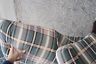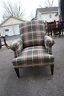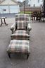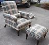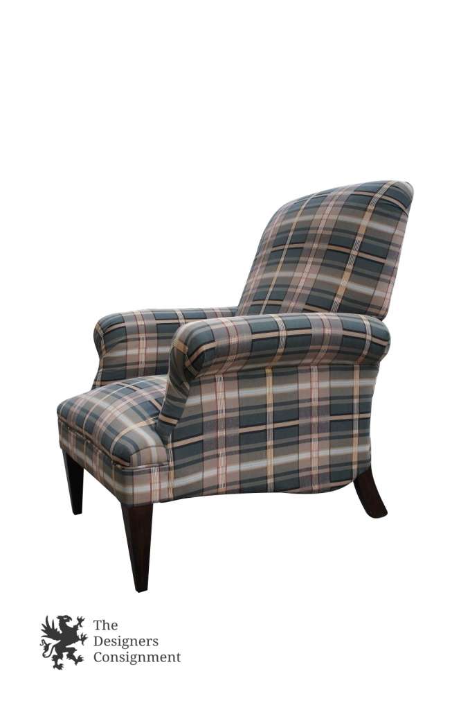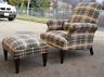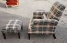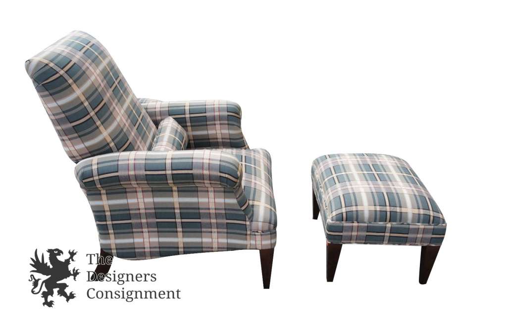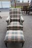 Vintage Plaid Upholstered Reclining Club Arm Chair Ottoman Contemporary Modern