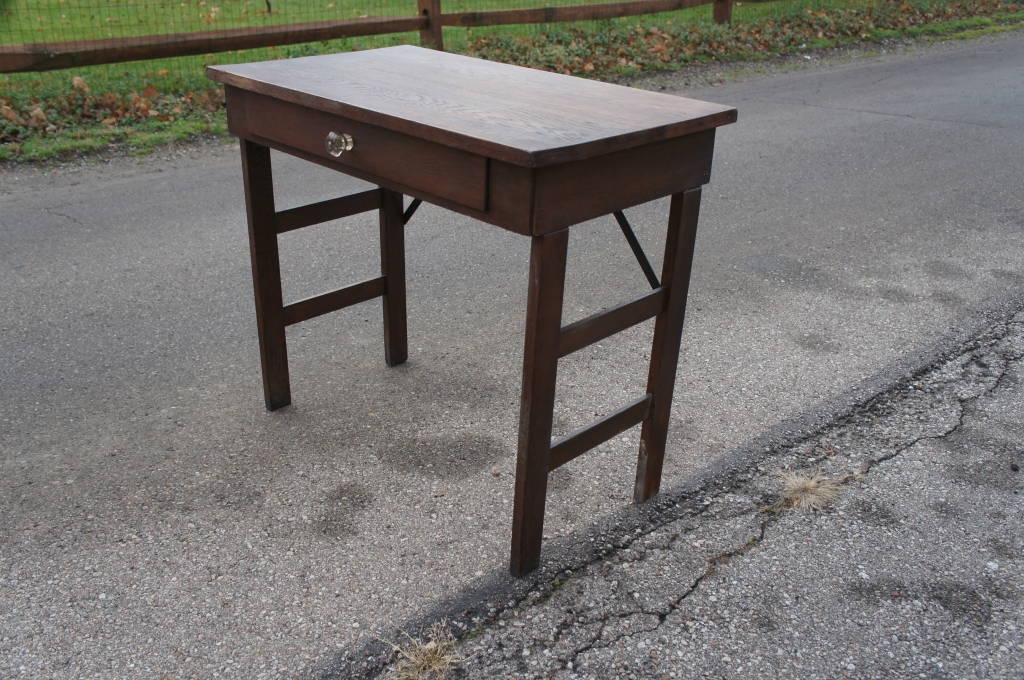 Vintage Mission Solid Oak Knockdown Desk Campaign Style Arts + Crafts Glass Pull