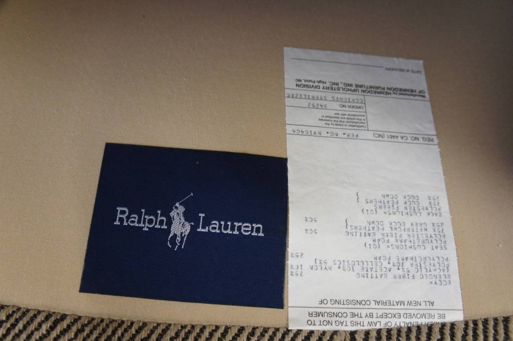 2 Vintage Henredon Ralph Lauren Club Chairs Striped Polo Lounge Seat RL Ottoman