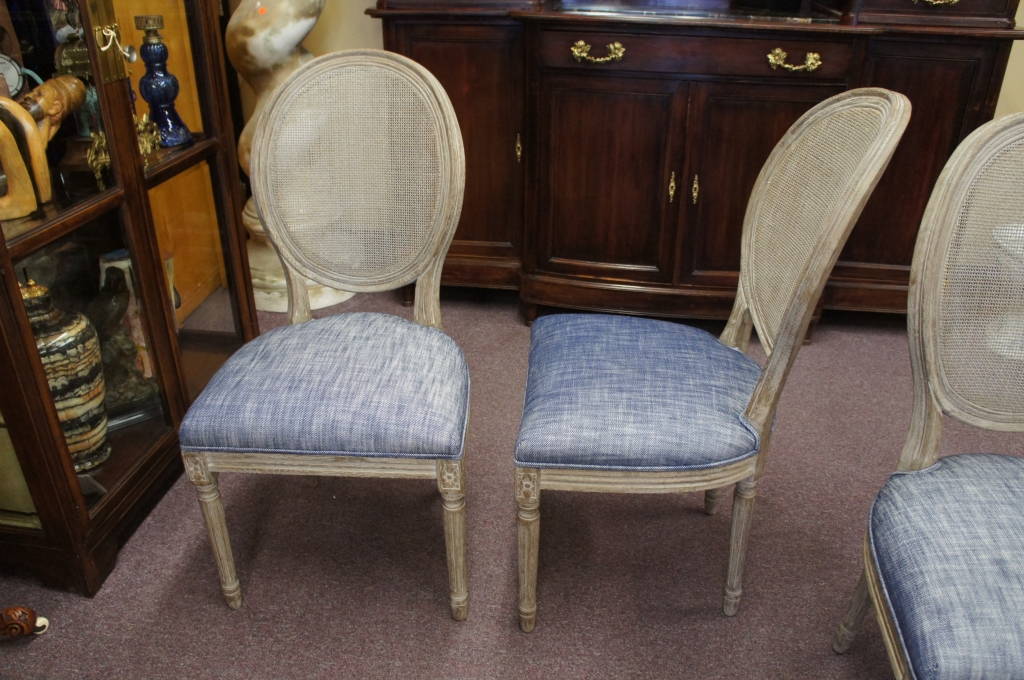 4 Restoration Hardware Vintage French Round Cane Back Fabric Side Chair Country