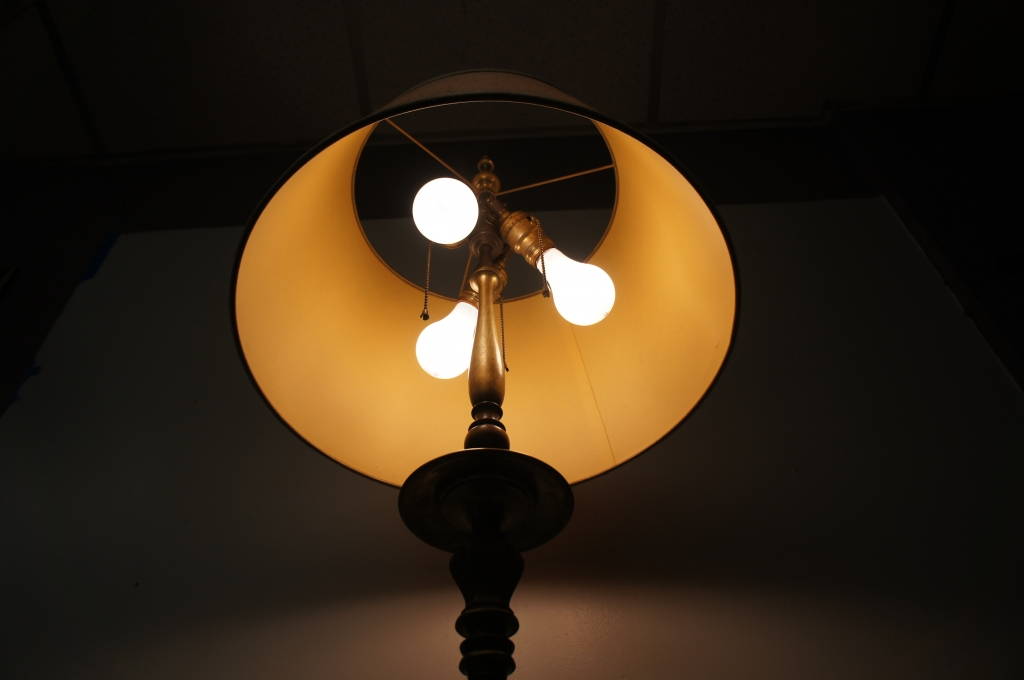 Vintage Mid Century Solid Brass Heavy Floor Lamp 3 Light Reading French Style