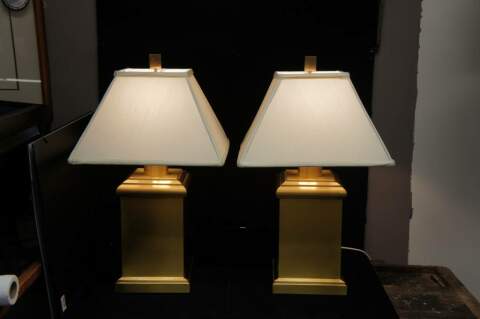 2 Wildwood Square Canister Lamps Hand Formed Brass Base 29" Light Rare Designer