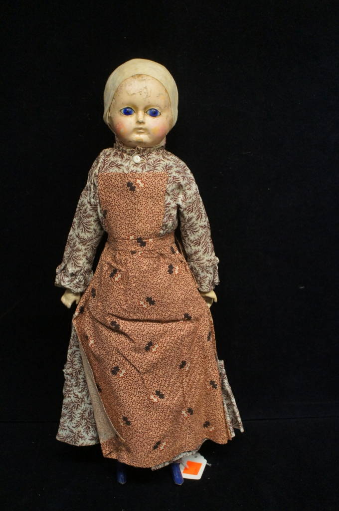 Rare Civil War Era 16" Antique Composition Doll Wax Face Glass Eye Wood Feet