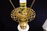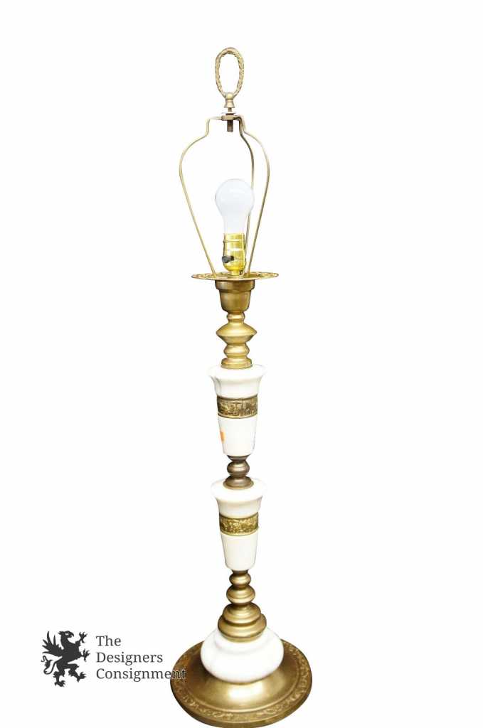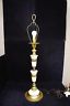 A stunning mid century marble and etched brass table lamp. Features a reticulated brass top and etched scenes on the brass column. A very heavy piece with a great look!