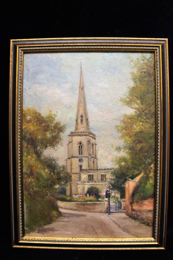 E. Cox Oil Painting Gedling Church England Framed Mid Century Realist Art 16