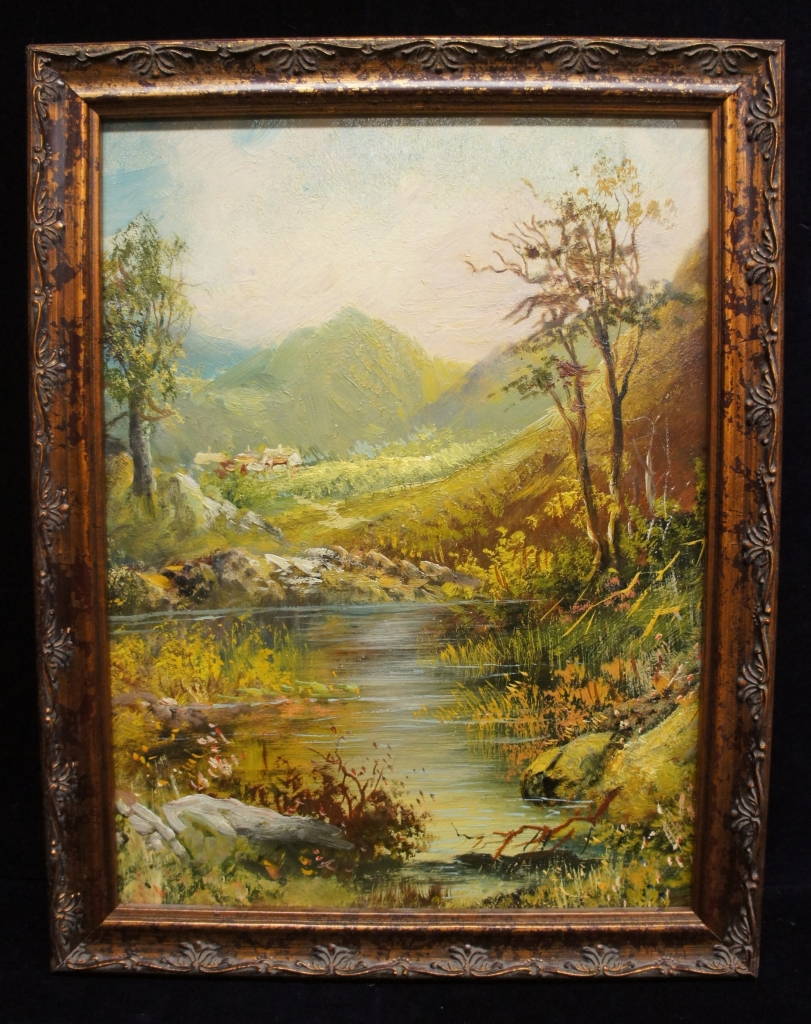 Beautiful Original Realist River Landscape Painting Spring Countryside Oil Vtg