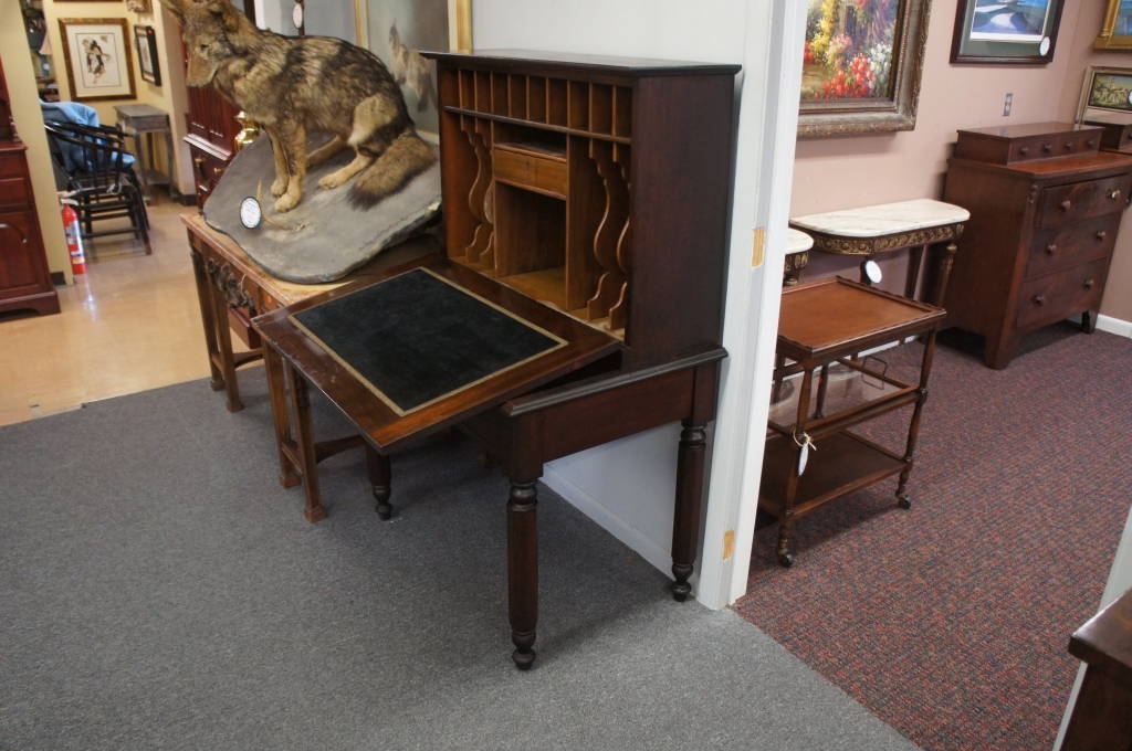 Primitive Antique Floral Secretary Desk Walnut Hutch 19th Century Early American