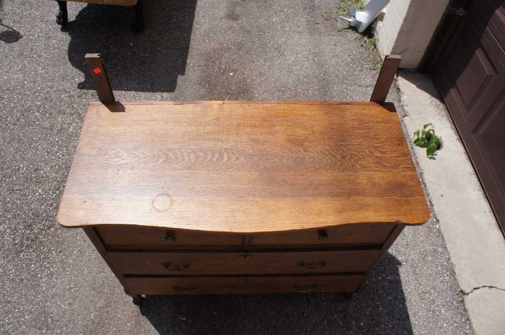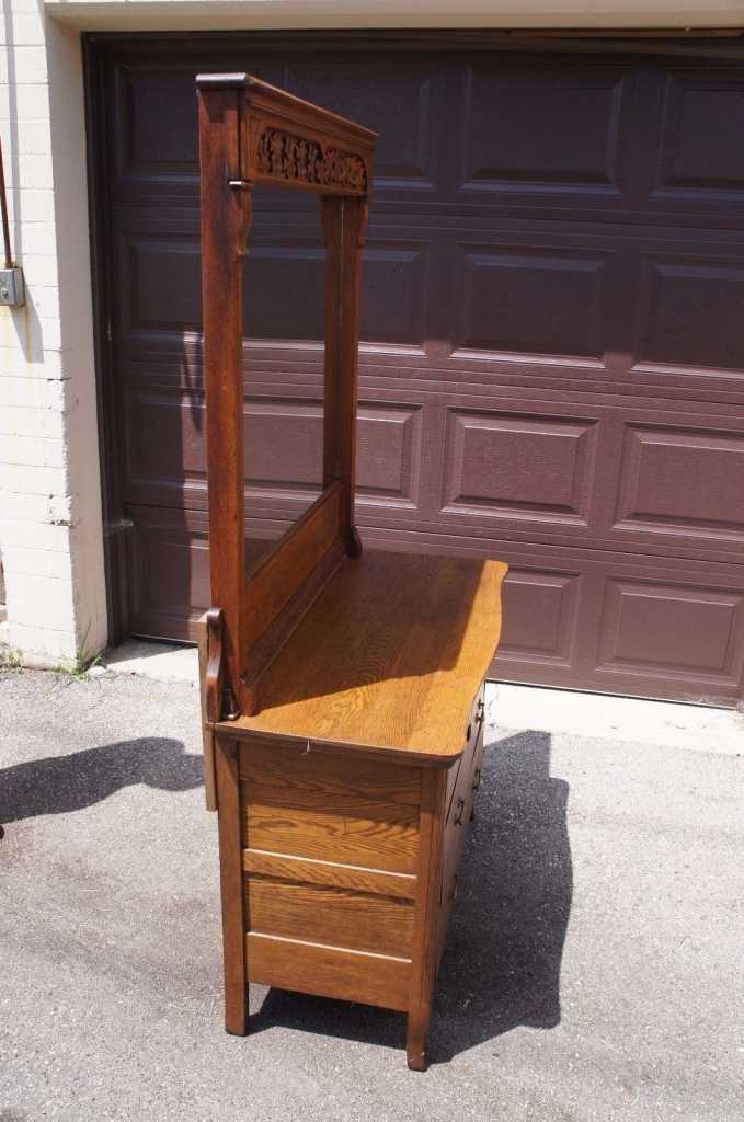 Antique Arts & Crafts Misison Style Tiger Oak Bow Front Dresser & Mirror Chest