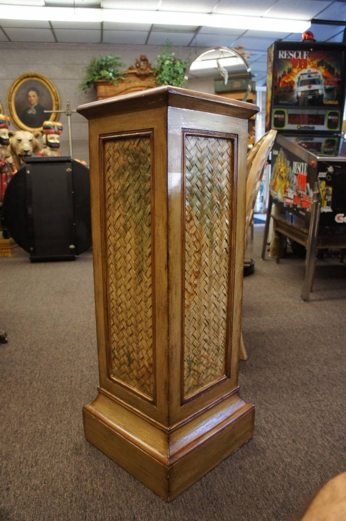 Hand Painted Wood & Rattan 42" Flower Pedestal W/ Palm Trees Florida Designer