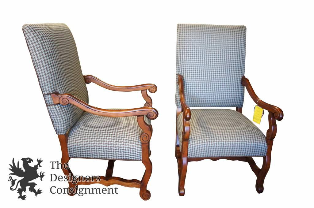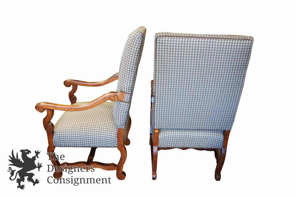 2 Vtg Oversized Houndstooth French Country Occasional Arm Chairs Club Designer