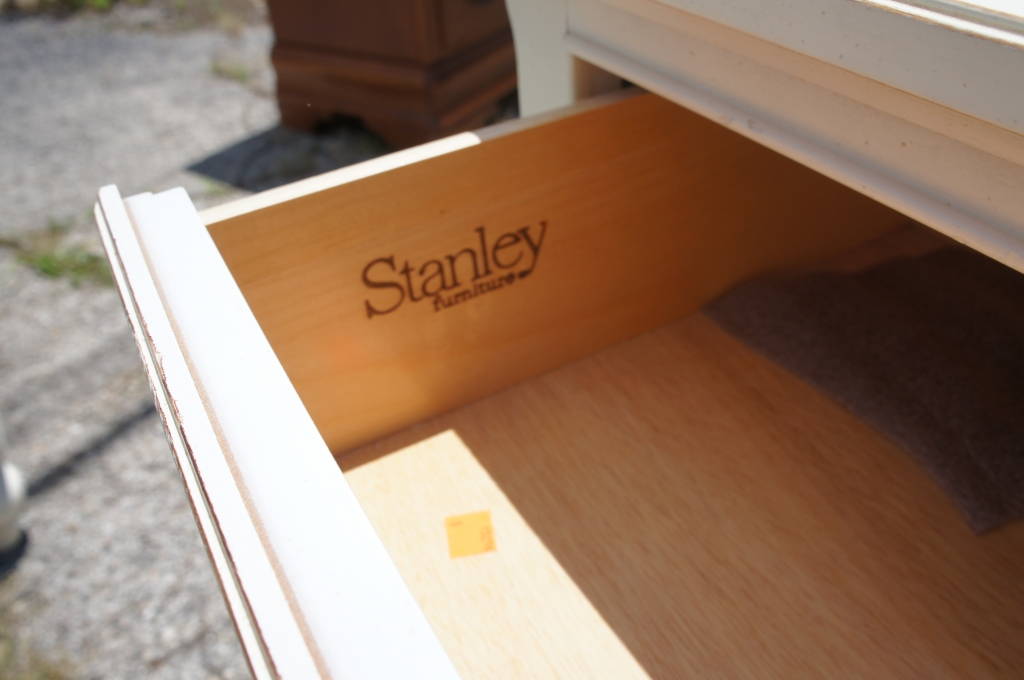 Vtg Stanley French Provincial Distressed White Nightstand Country Shabby Table