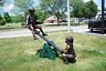 The lost wax casting method is a labor intensive process which is considered to be the best for capturing the finest details of an artist's original sculpture. Typically, a wax replica of the original is made and then dipped in liquid ceramic in order to create a ceramic mould. Once cured, the ceramic shell is kiln fired and as the shell bakes, the wax inside melts and is lost from the shell (thus the term lost wax). After the ceramic shell is removed from the heat, molten bronze is poured into it to create the final casting.