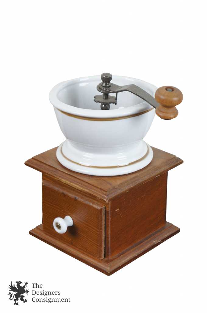 1982 Vintage Teleflora Coffee Mill Grinder with Porcelain Cup and Knob