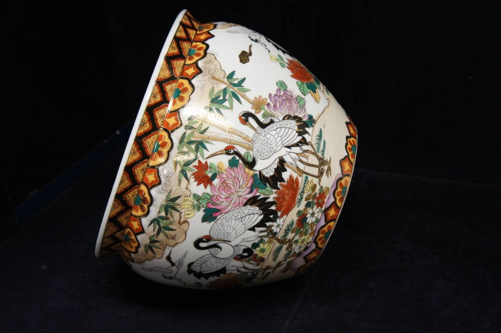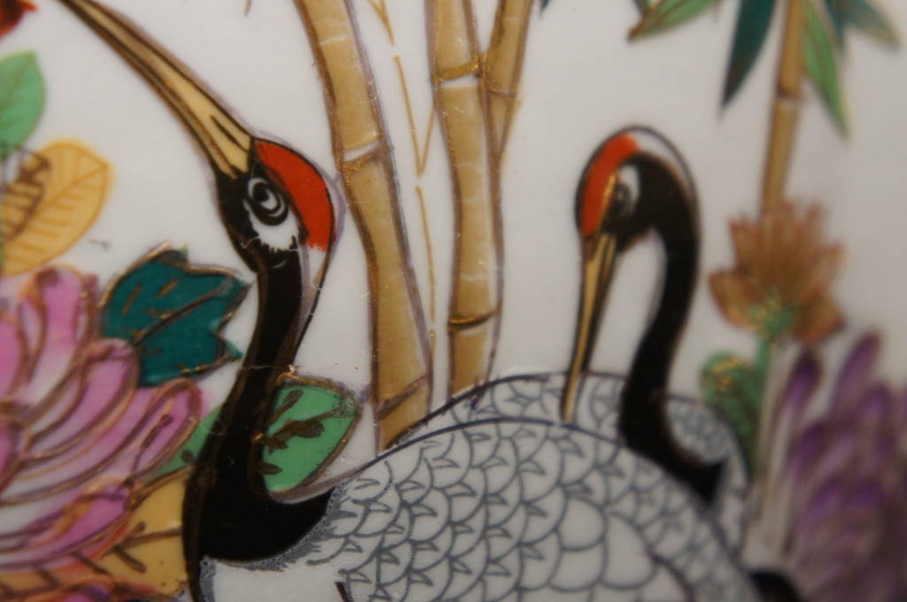 Vintage Chinese Famillee Rose Jardiniere Handpainted Cranes Urn Ginger Jar 12